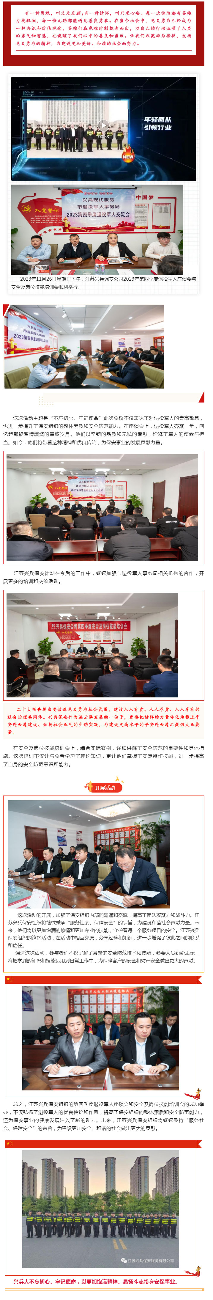 江苏兴兵现代服务组织开展第四季度退役军人座谈会与安全&岗位技能培训大会