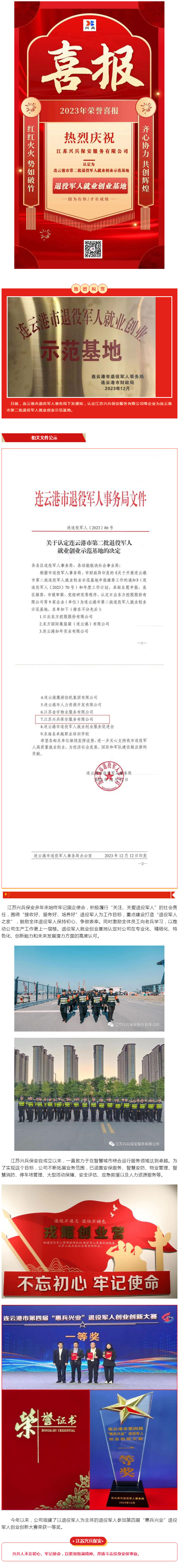 江苏兴兵保安被认定为市第二批退役军人就业创业示范基地