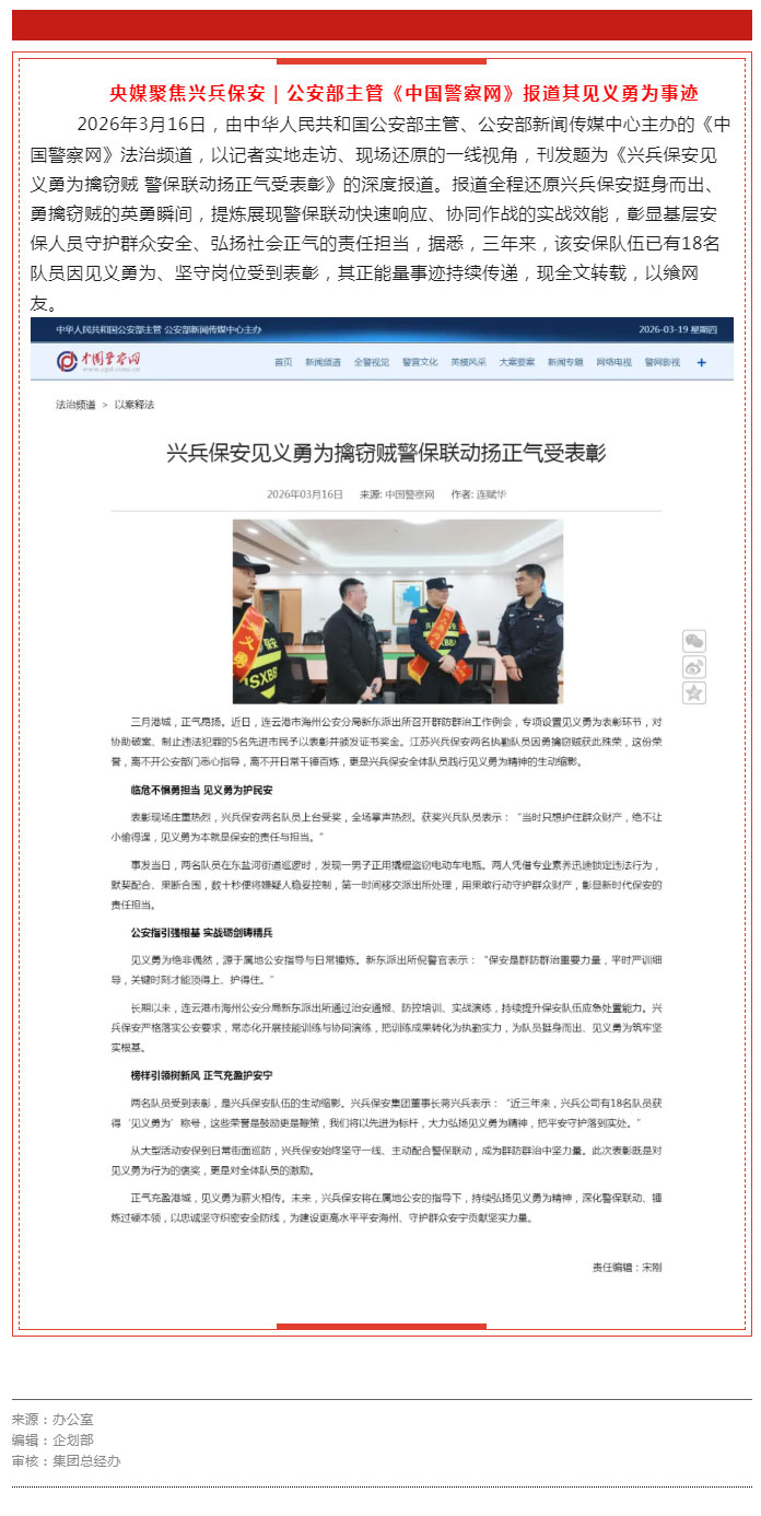 央媒聚焦兴兵保安|公安部主管《中国警察网》报道其见义勇为事迹